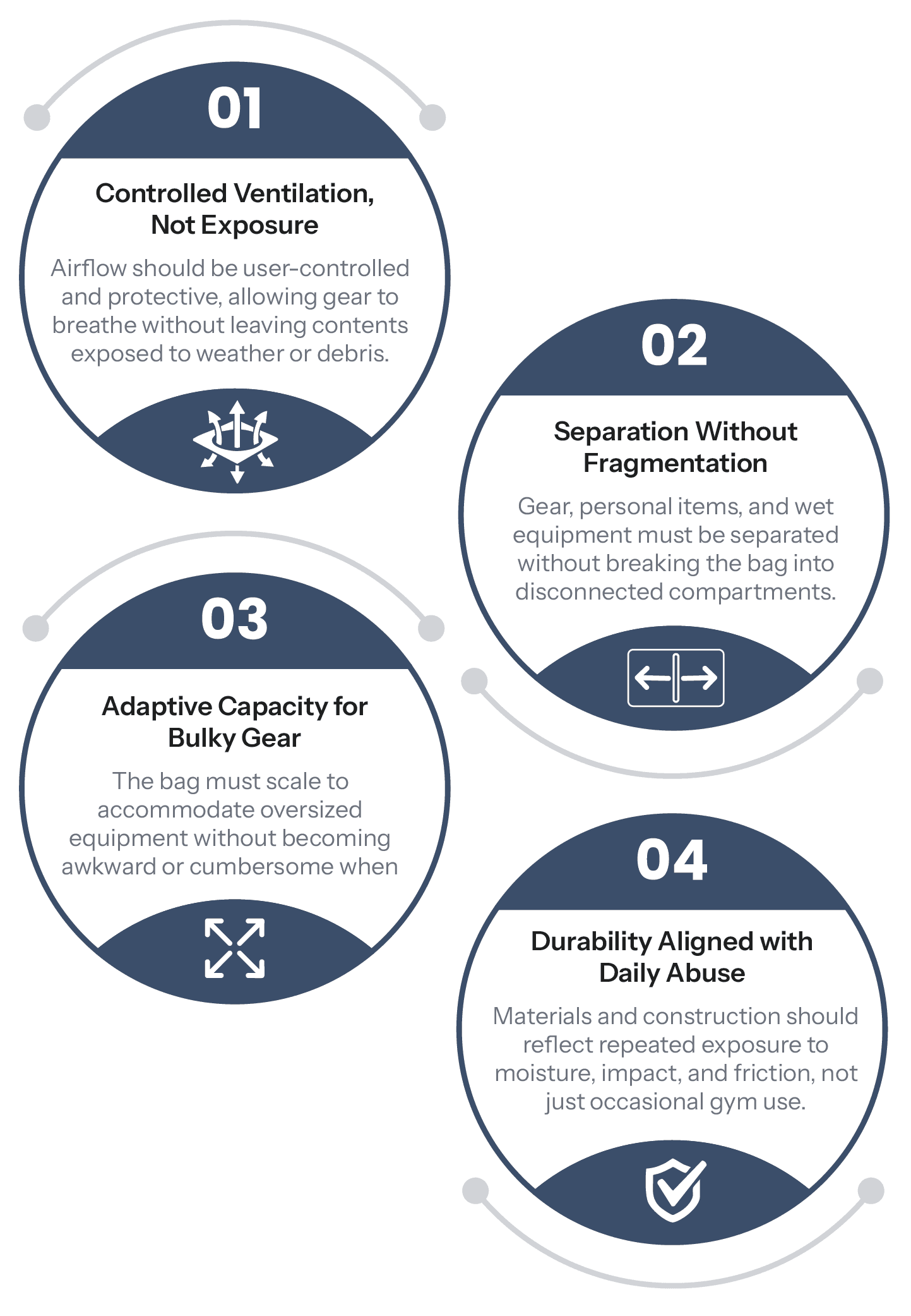 With a clear opportunity identified, the focus shifted toward defining a carry system that integrates ventilation, organization, and durability without being tied to a single bag format.