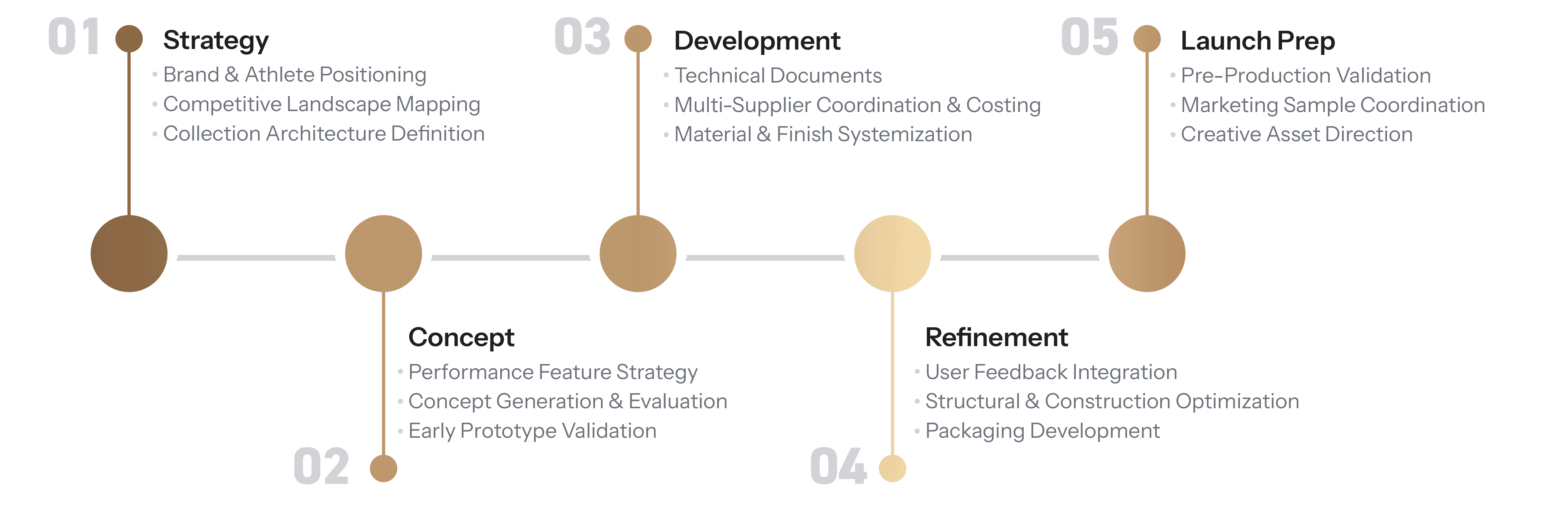 This collection was developed through a structured five-phase process, aligning brand strategy, product engineering, supplier coordination, and launch execution. Each stage reinforced performance standards while maintaining cross-category cohesion.